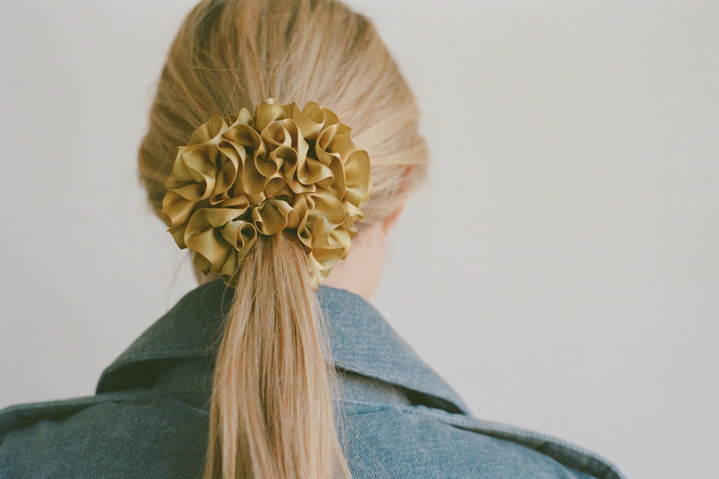 CARNATION SCRUNCHIE, GOLDEN OLIVE