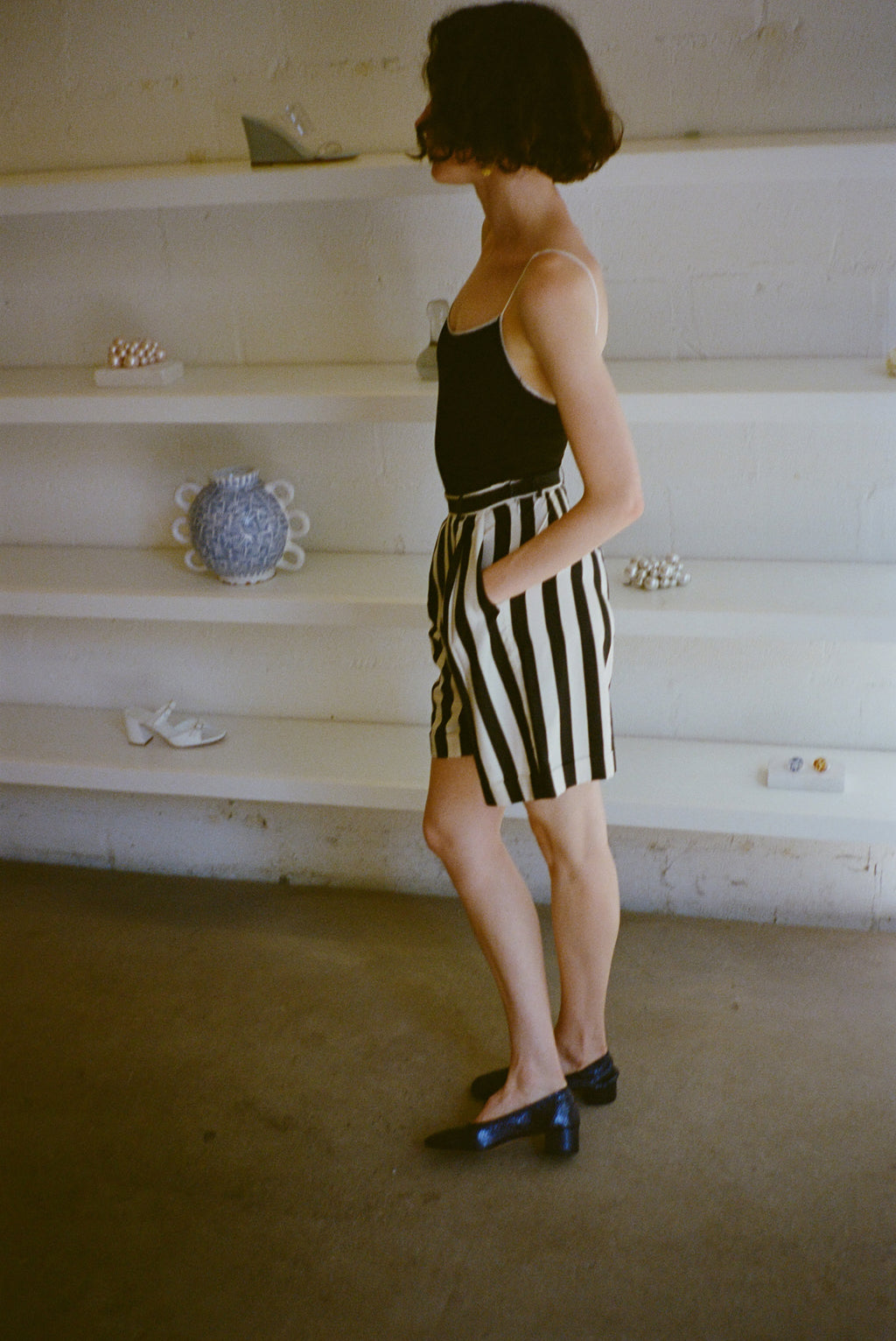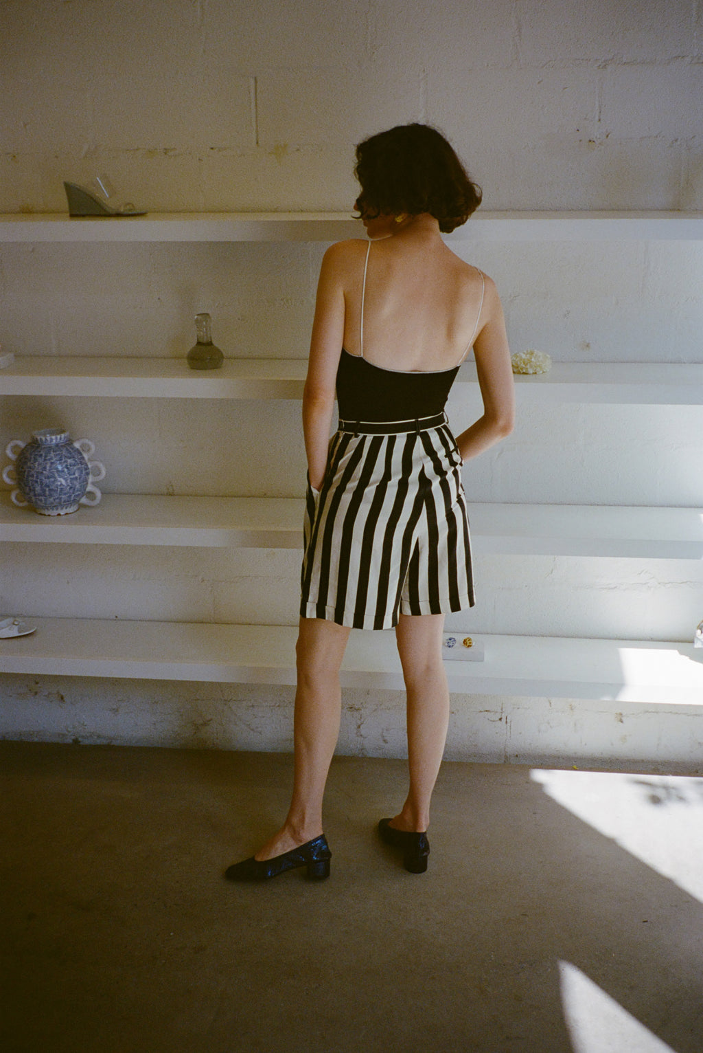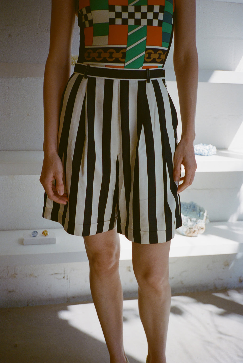 BLACK AND WHITE STRIPED BLOOMINGDALE SHORTS