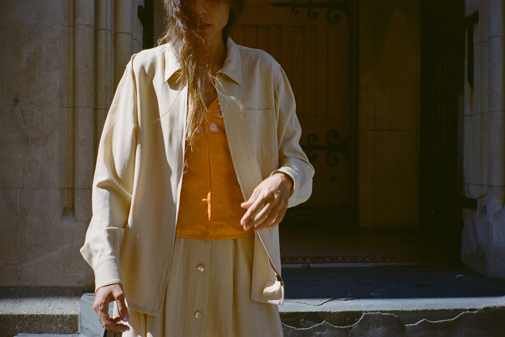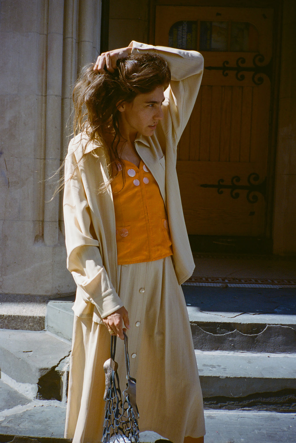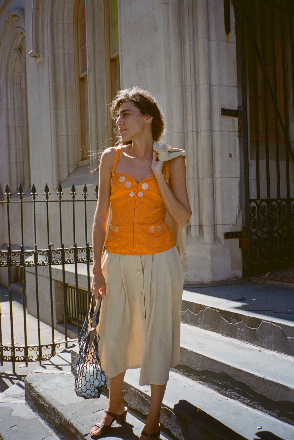 Midi full skirt with flap pocket detail and button closure down the center front.