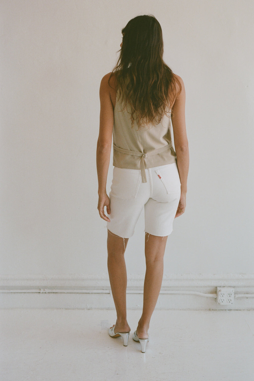 Vintage tan corduroy vest with belted back.