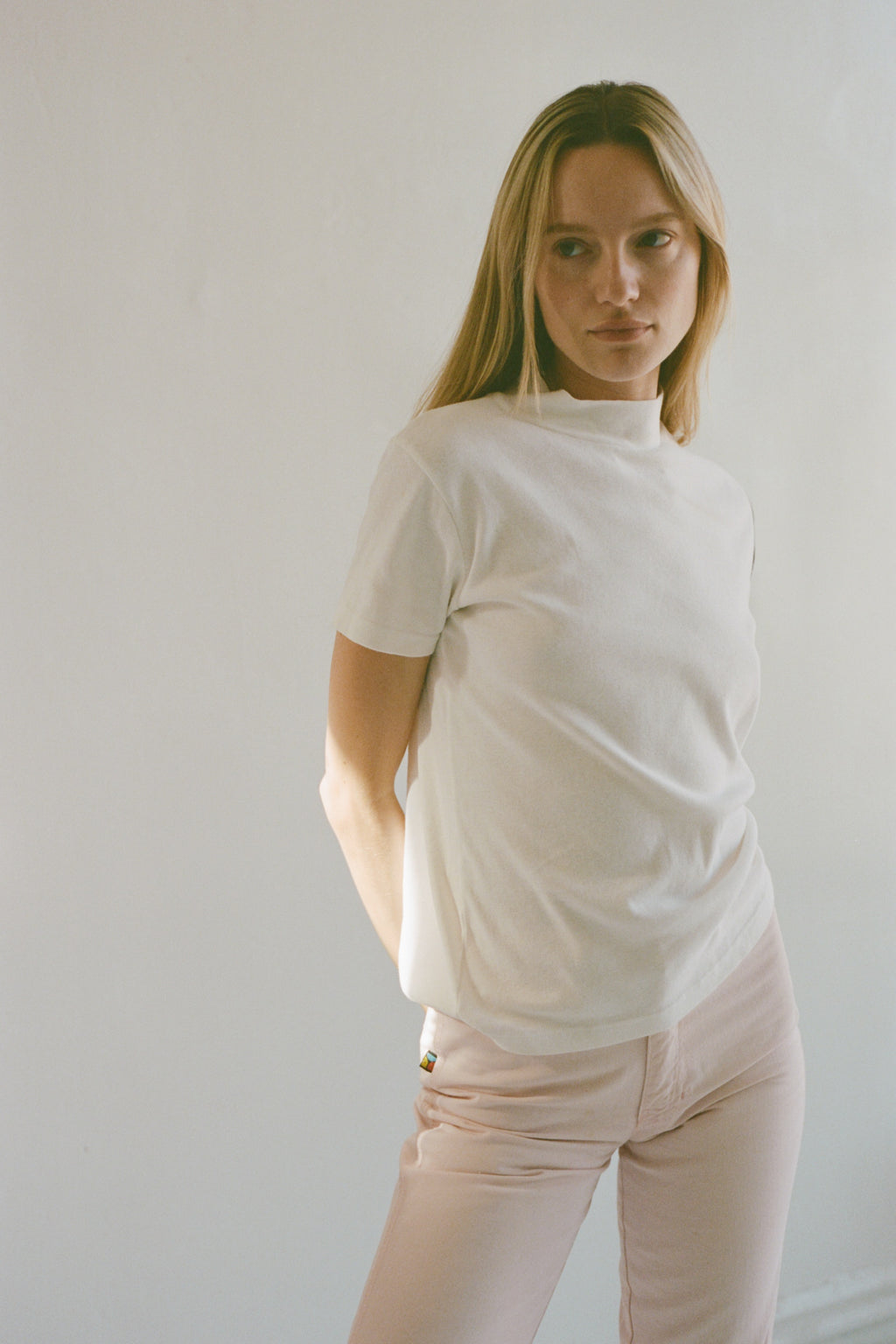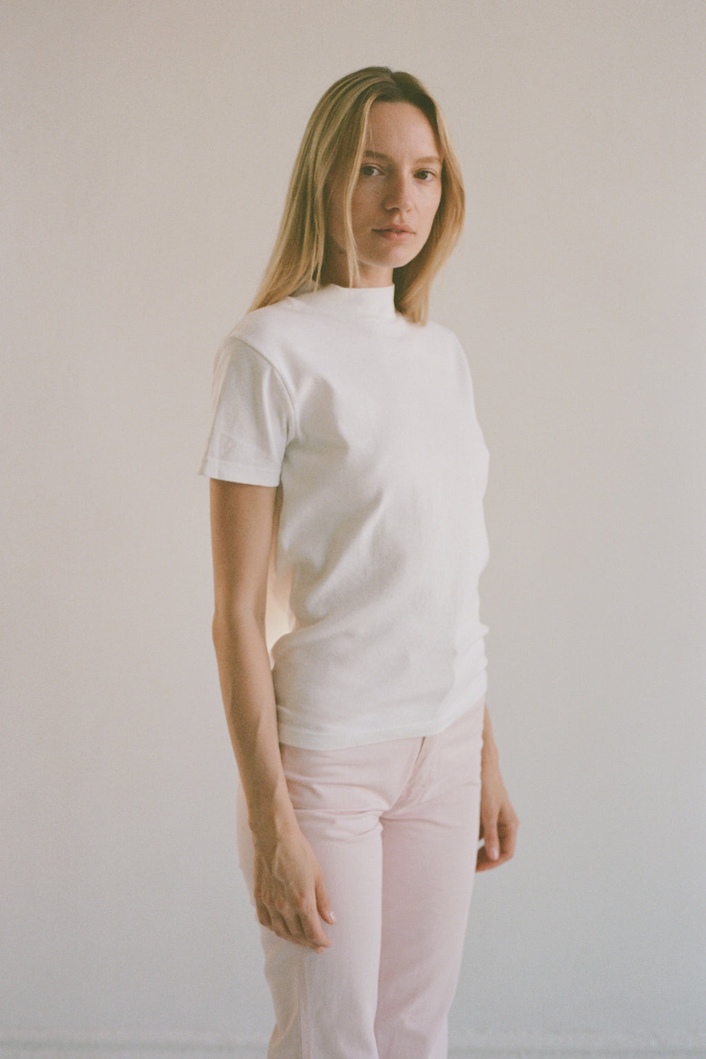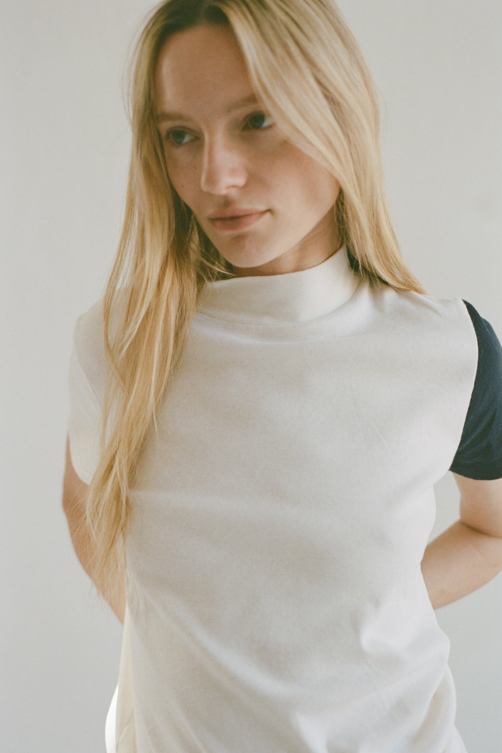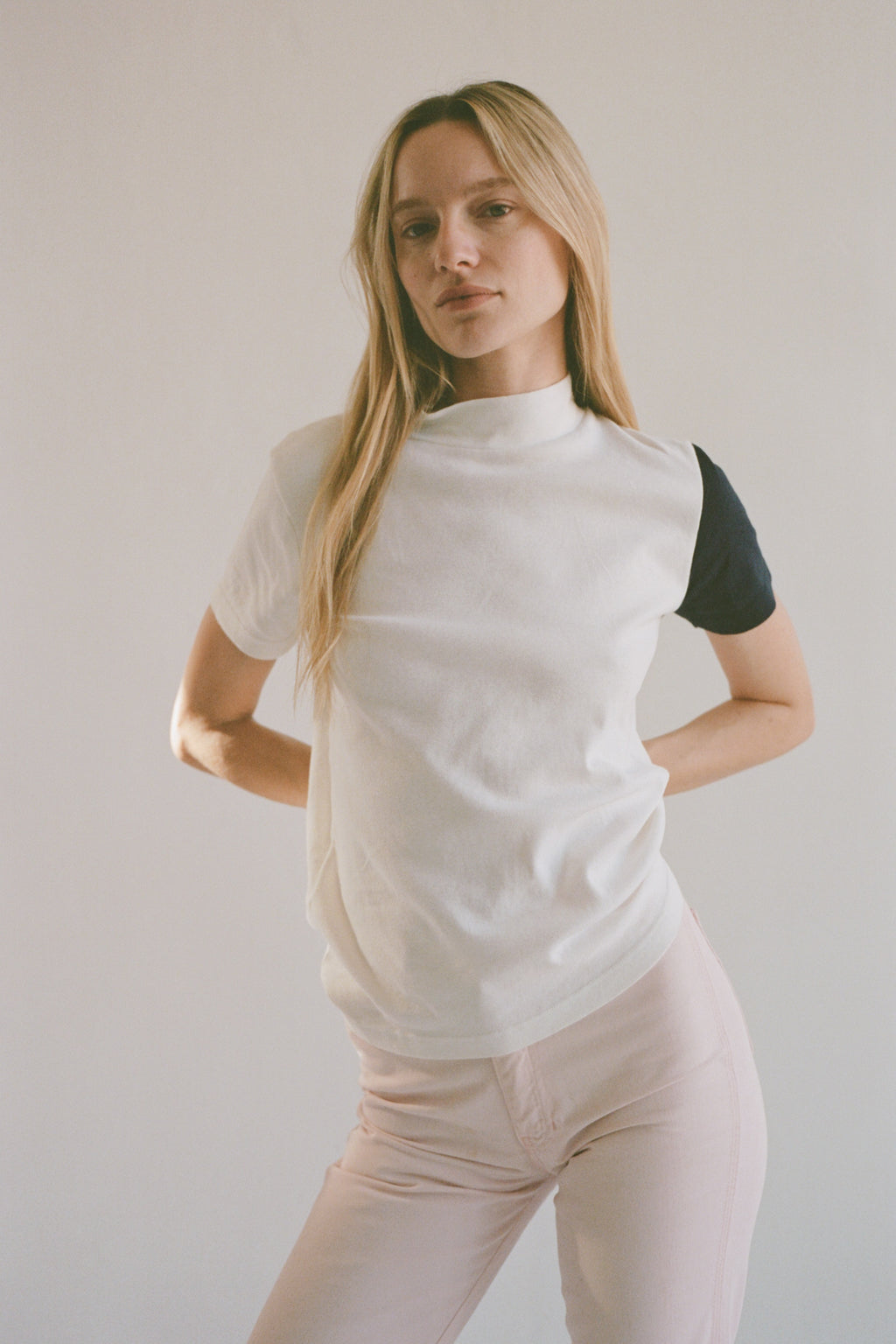 Vintage mock neck t-shirt from Jaquemus with one navy sleeve.