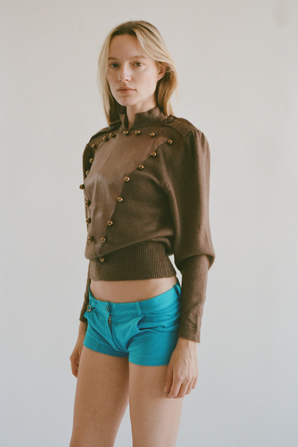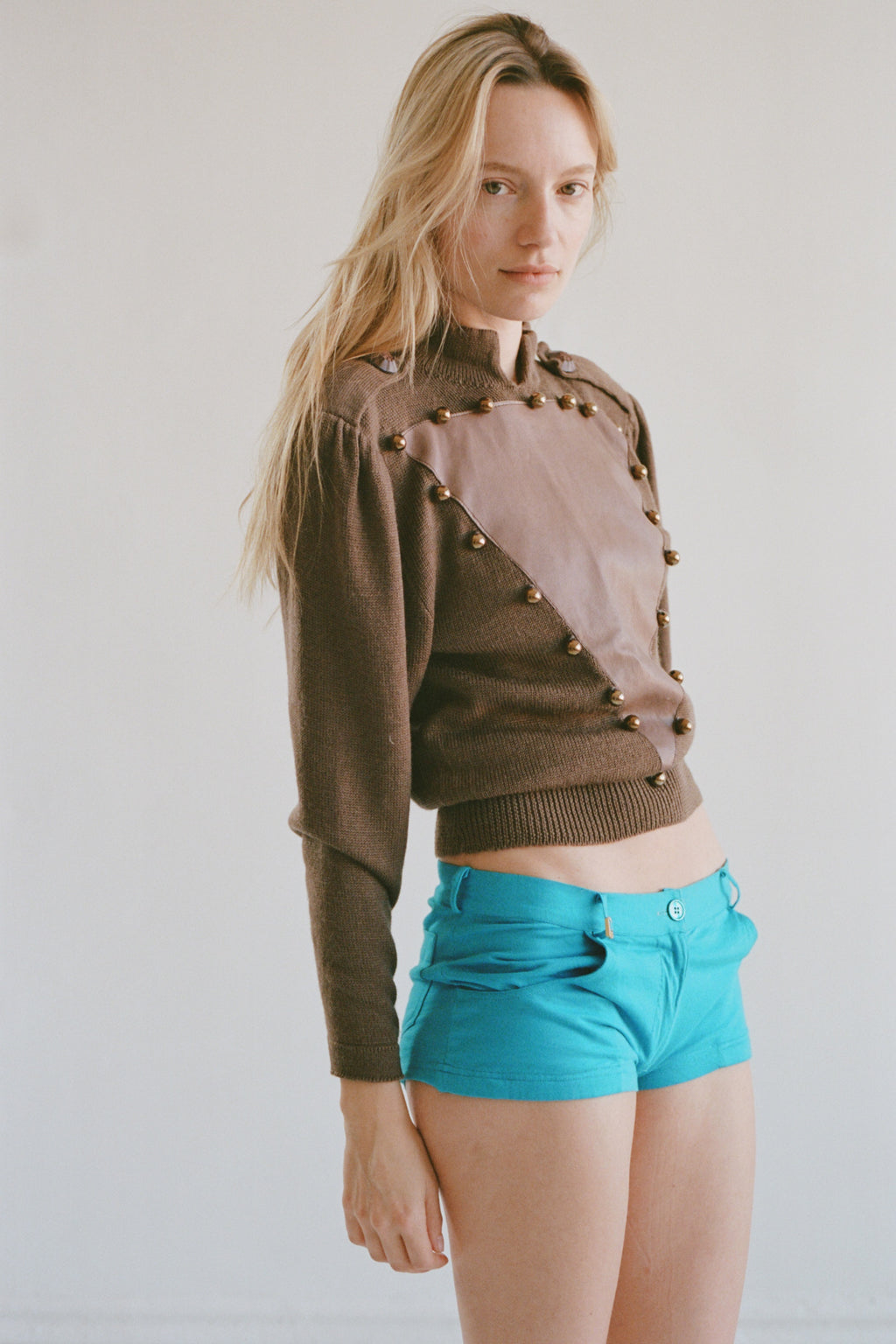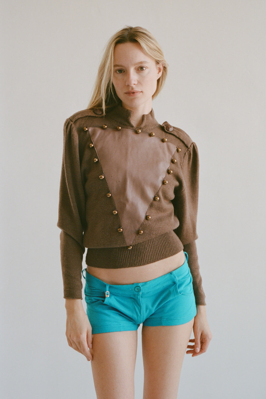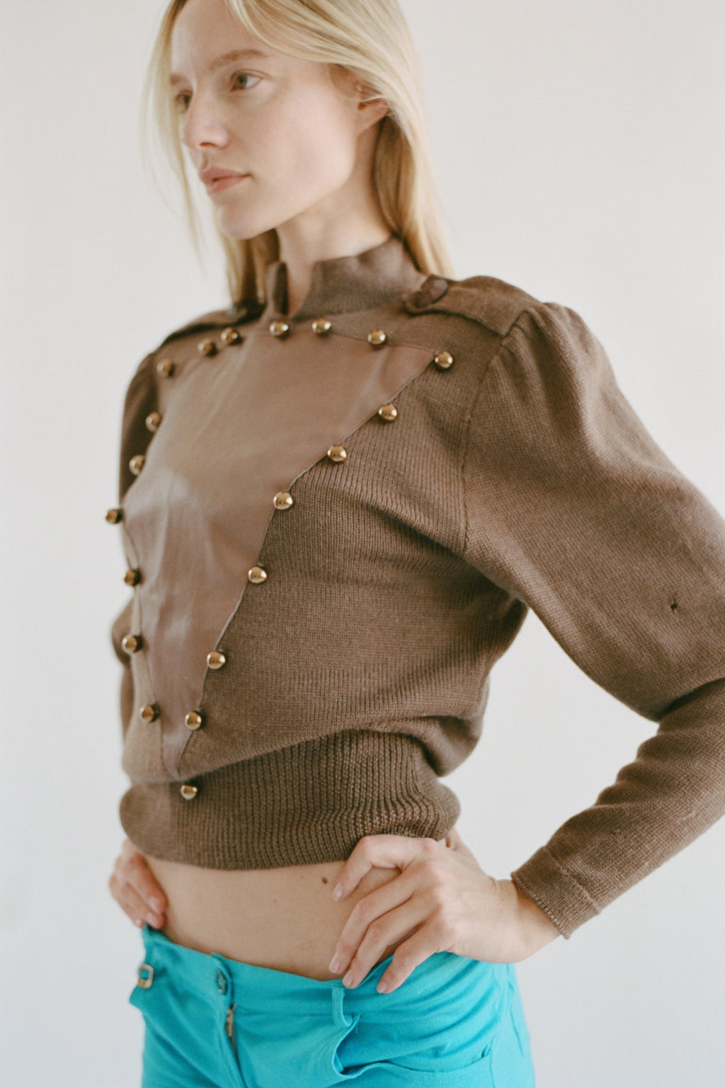 Vintage sweater by Lea Doree. Epaulettes at shoulder. Unique buttons and beads throughout.