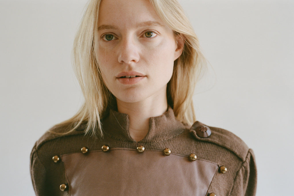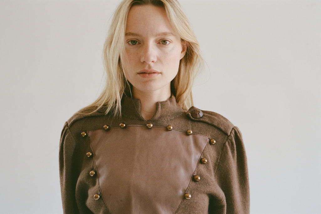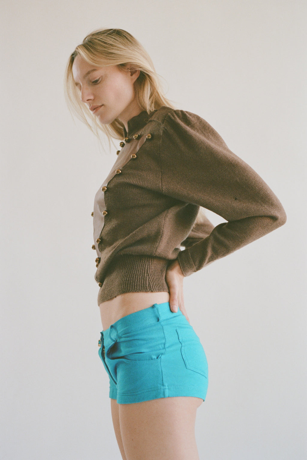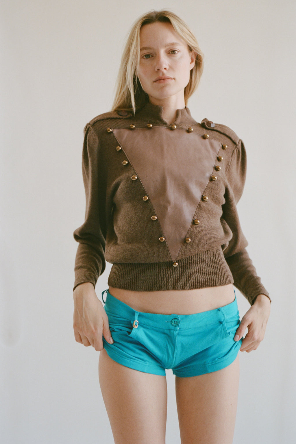 Vintage sweater by Lea Doree. Epaulettes at shoulder. Unique buttons and beads throughout.