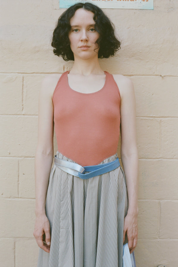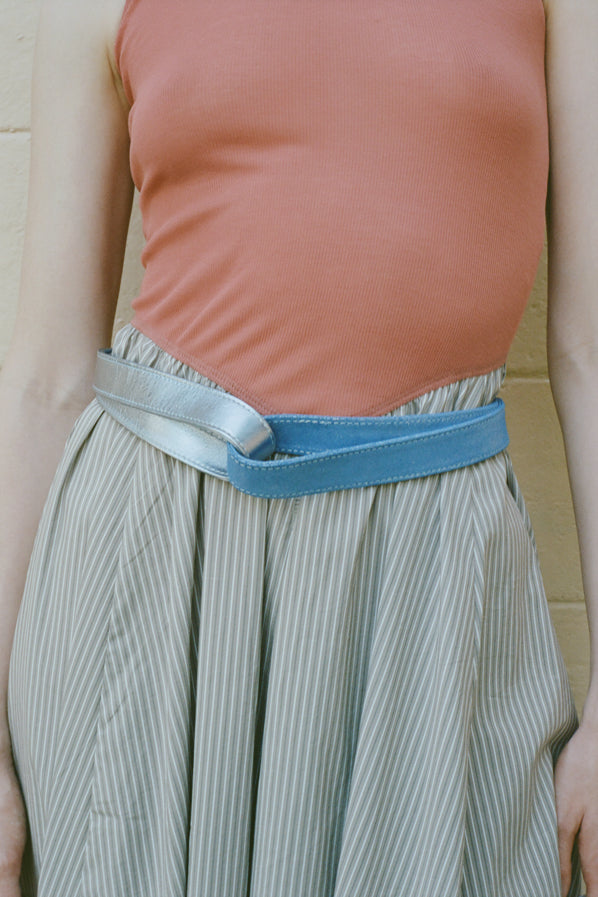 A belt with two straps linked together, in slightly different shades. With stud closure.