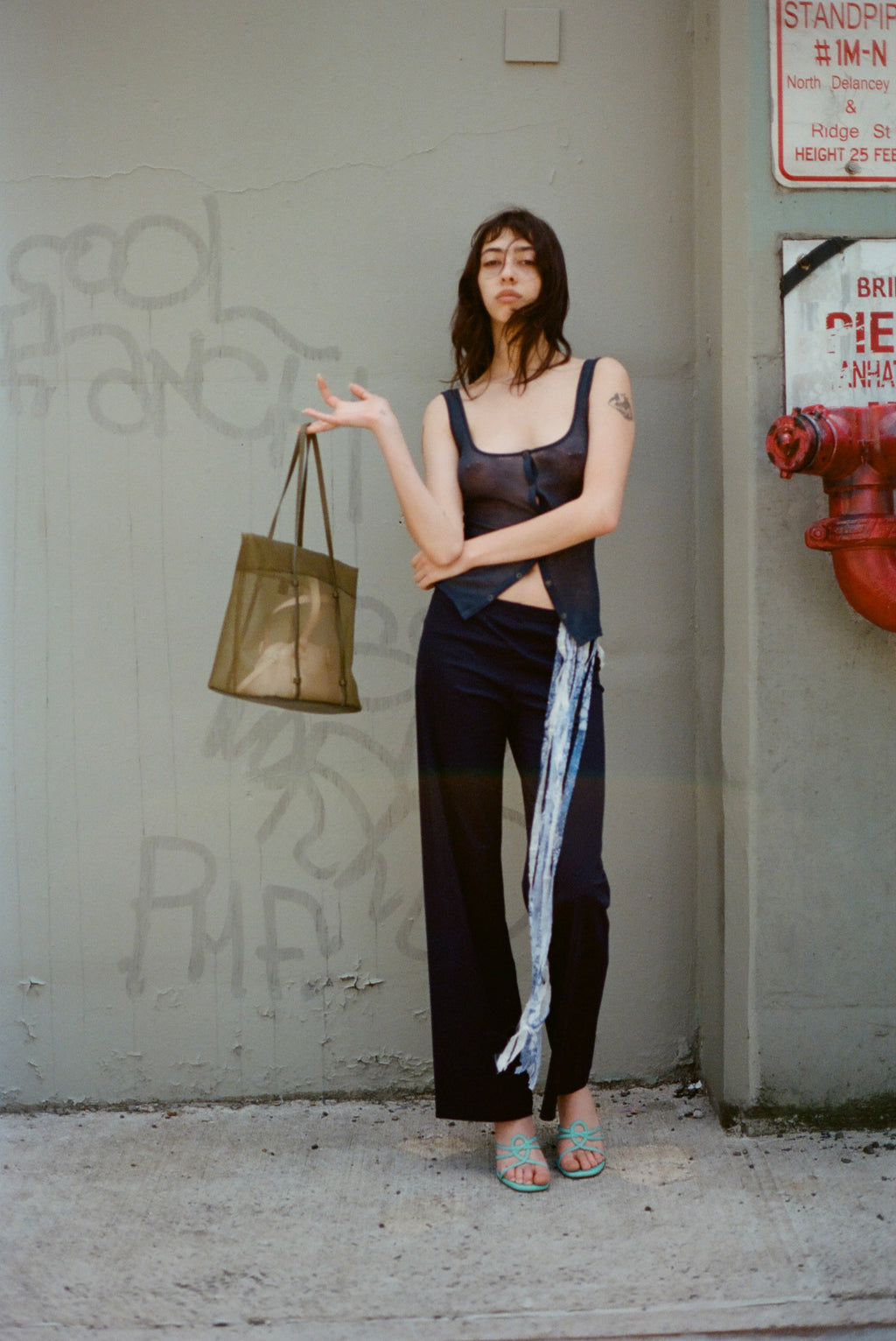 100% Metalized Mesh, Bottom and Handles 100% Leather