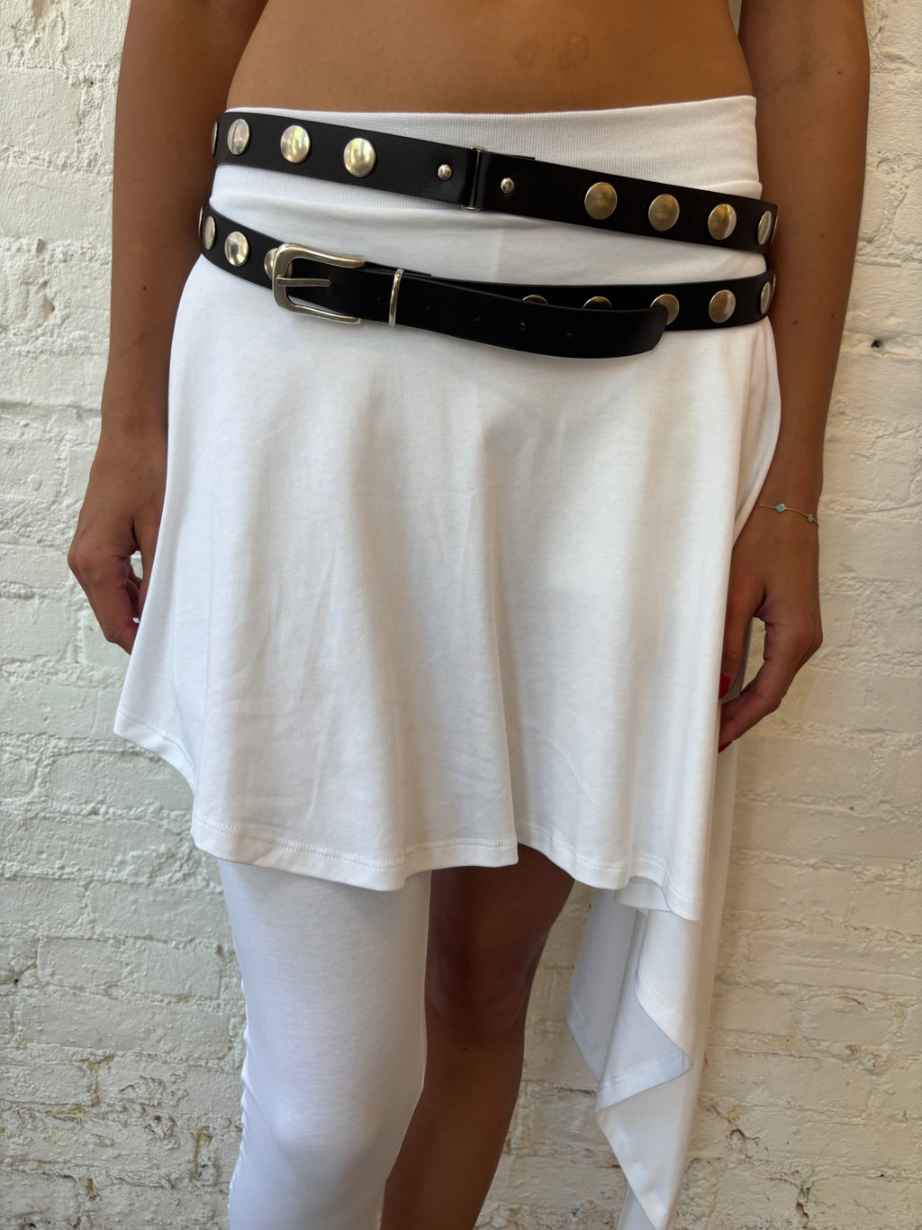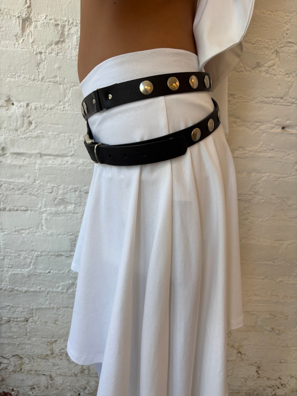 A double-wrapped belt for a layered silhouette, finished with studded detailing.
