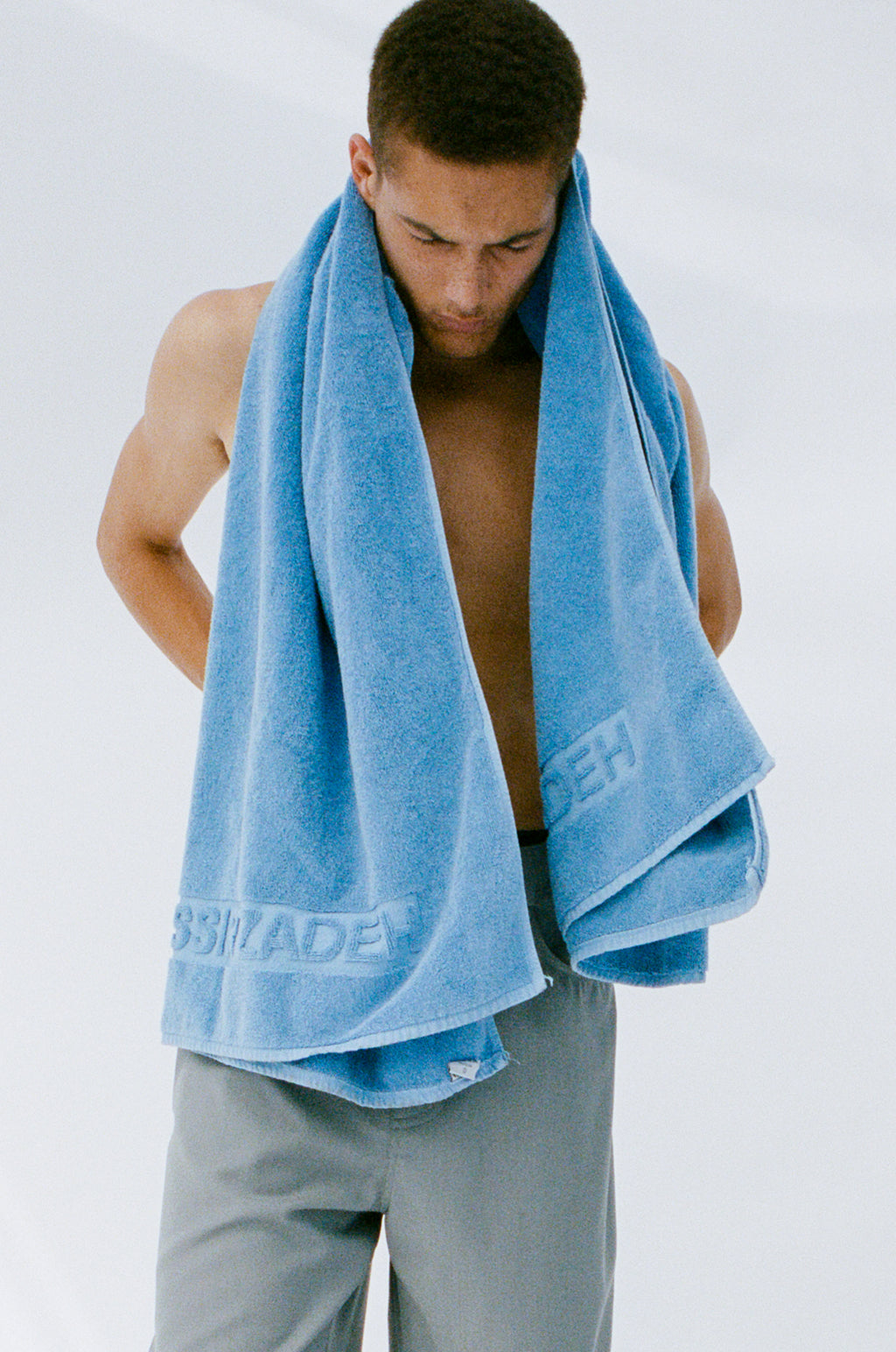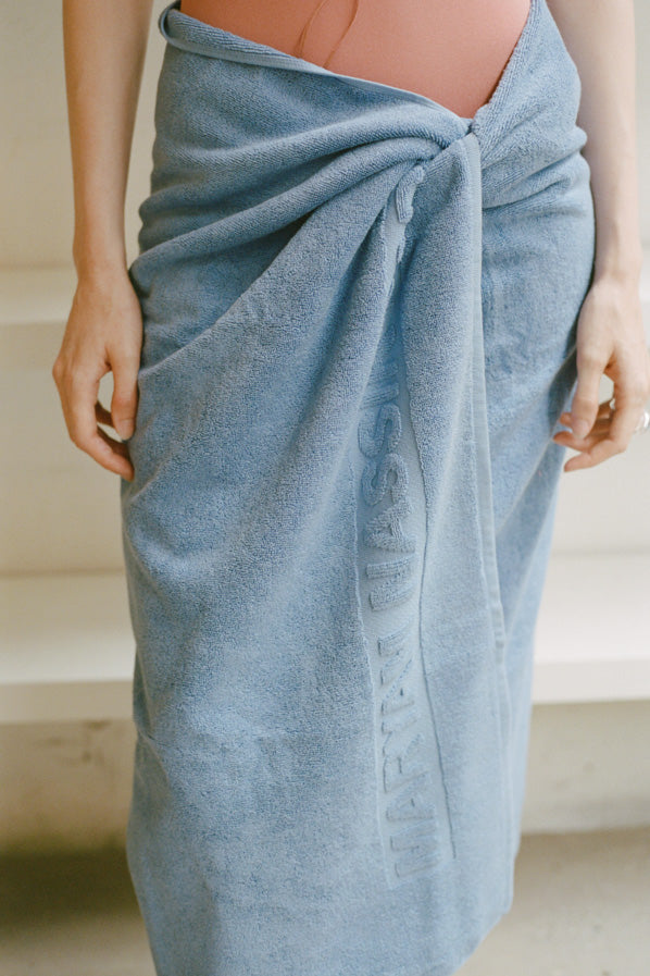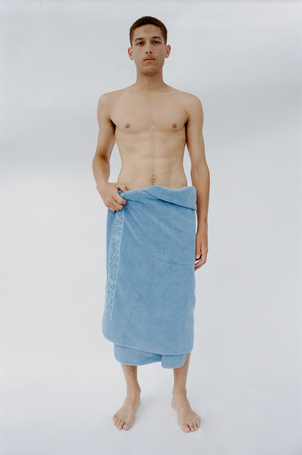 Large bath sheet towel. Rectangular terrycloth towel featuring Maryam Nassir Zadeh logo.