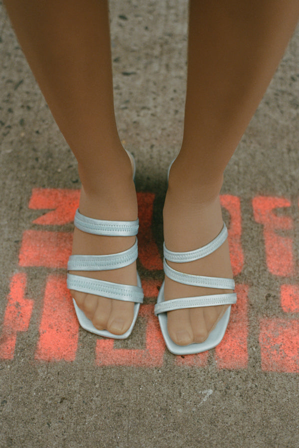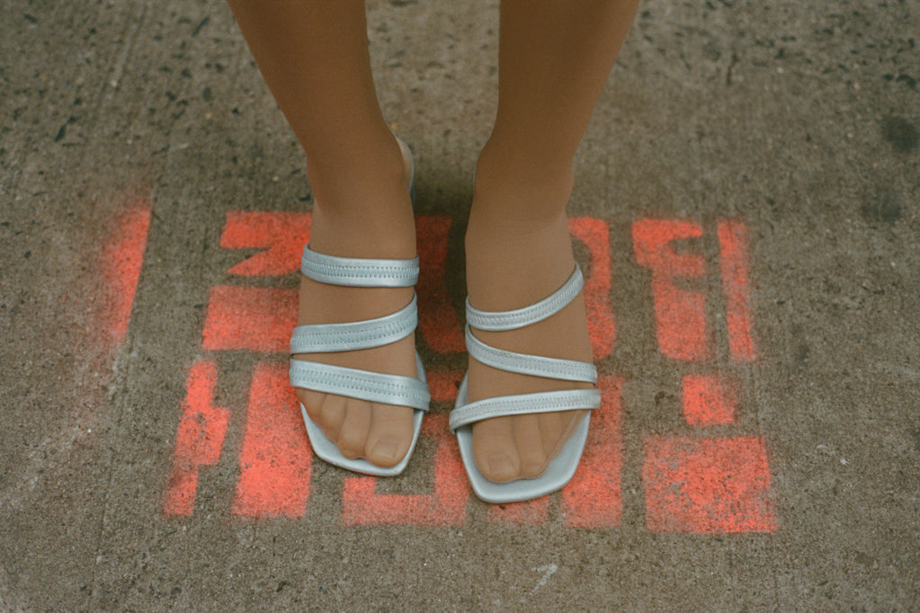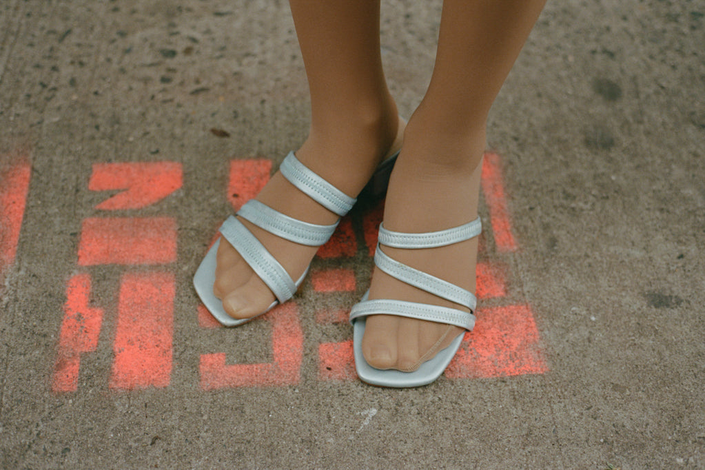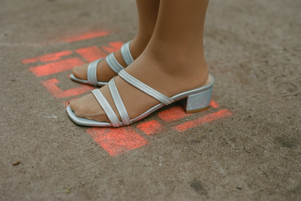 Slip on sandal with toe strap. Contrasted 2in block heel.