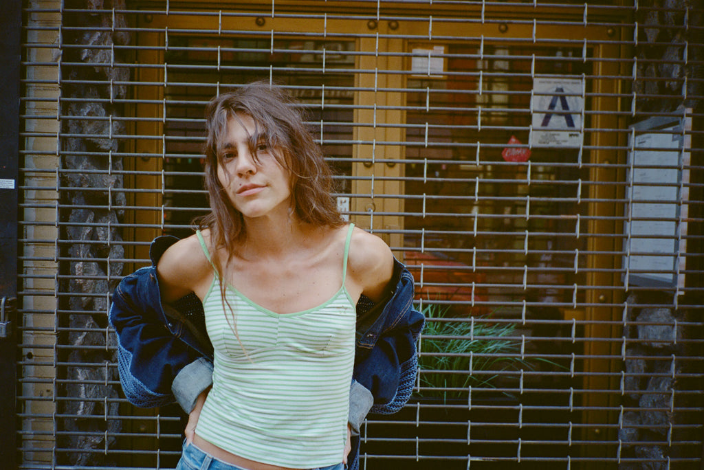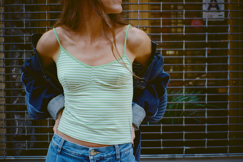 GREEN AND WHITE STRIPED CAMISOLE